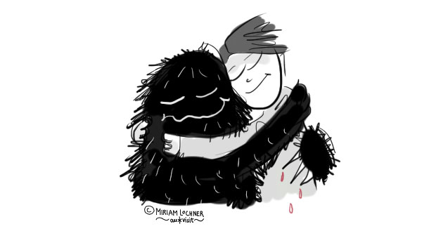 Manchmal hängen unsere Monster extrem an uns. Versuch mal wortwörtlich, über deinen Schatten zu springen! Nicht mal verschütteter Honig klebt so hartnäckig an deinem Bein. Ja, man könnte meinen, das Monster würde einen geradezu lieben und deswegen nicht loslassen wollen. Was so abwegig gar nicht ist: Diese Monster sind ehemals als Schutzreaktionen entstanden, als wir Kind waren. Was kann man aber nun in so einer Situation machen, wenn sich die Angst so an einen klammert?